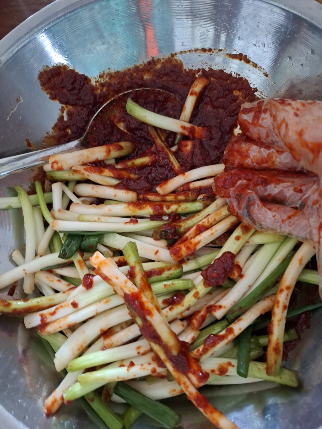 양념은 멸치액젓, 고춧가루, 매실액, 올리고당