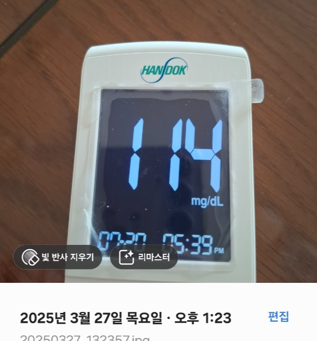 오늘도 먹기 전에 혈당을 재어봅니다.