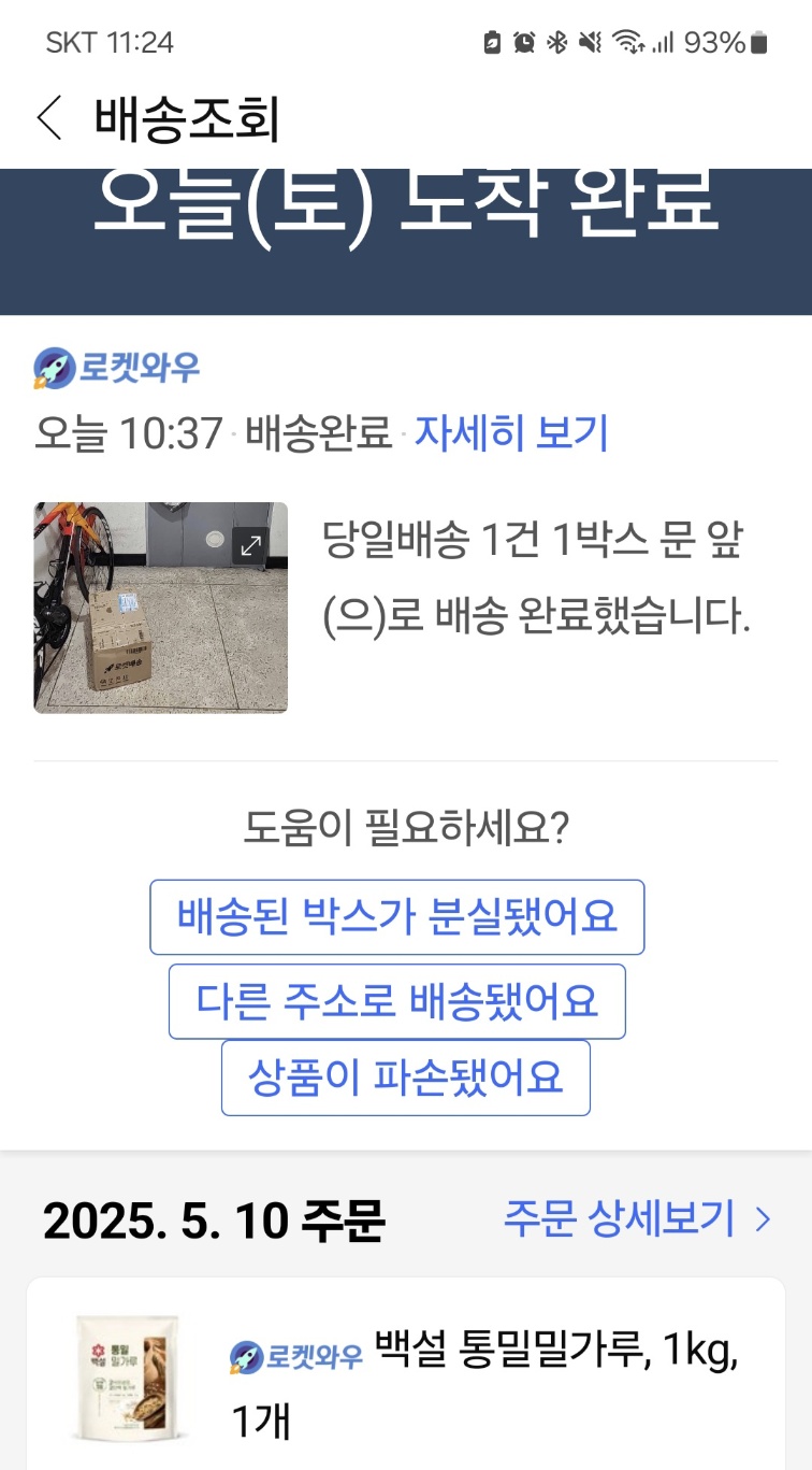 전 날 밤 쿠팡에서 로켓배송으로 통밀가루를 주문했더니,