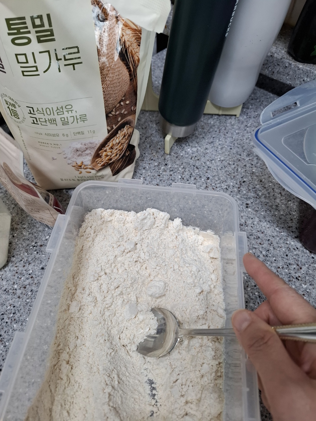 통밀가루가 일반 밀가루보다 물을 많이 먹더라구요..