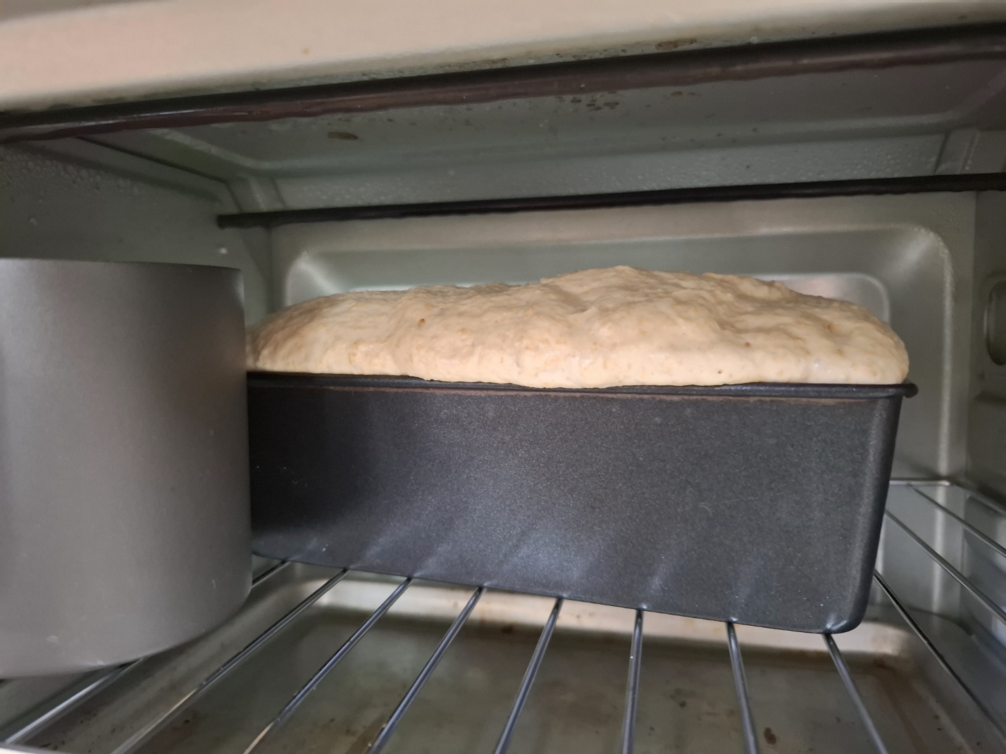 30분 후에 발효된 반죽을 빵틀에 옮겨 담고 다시또 30분 정도 발효를 해줍니다.